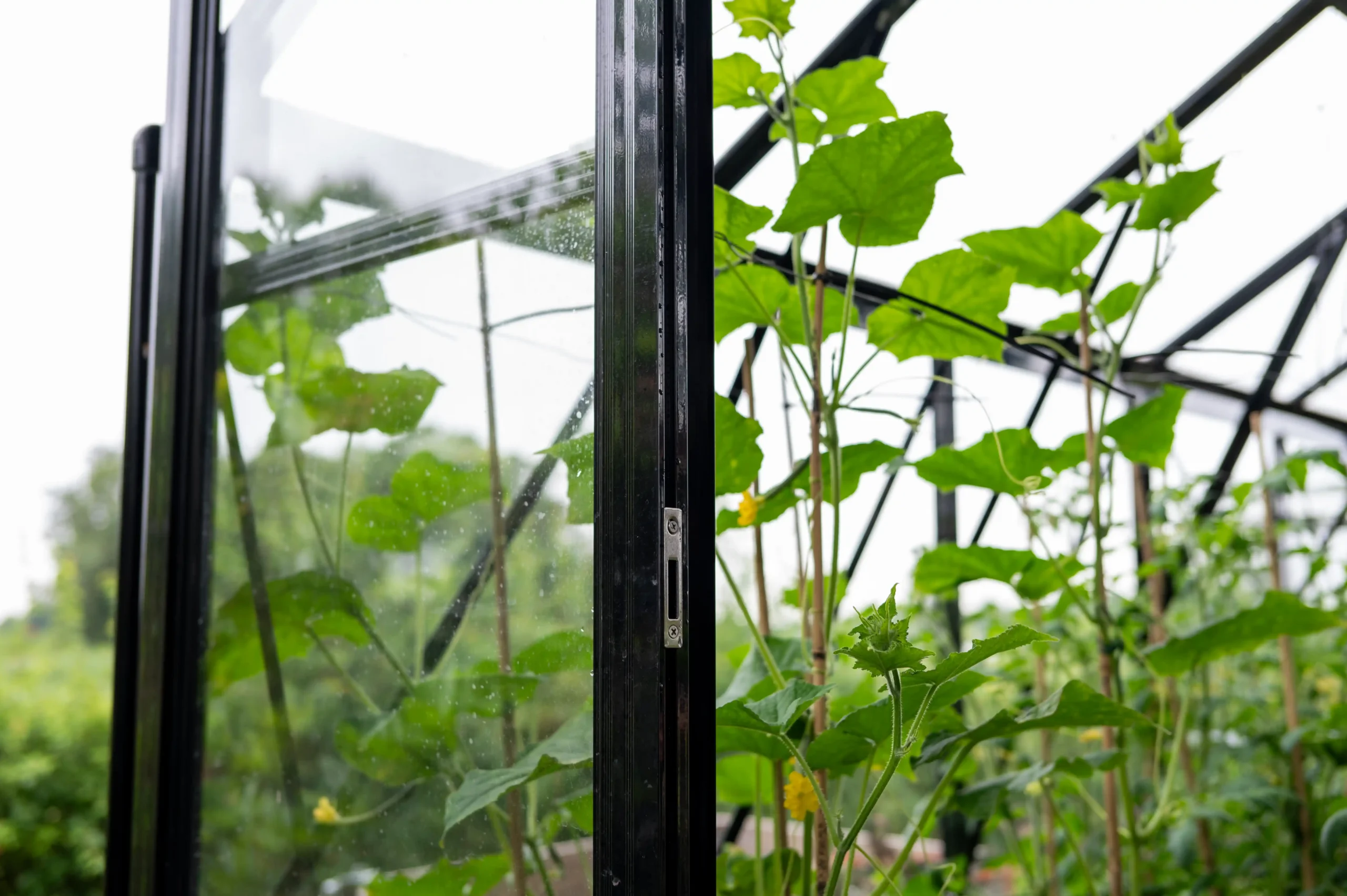 In einem Gewächshaus kann sich Kondenswasser bilden, besonders in kälteren Perioden.