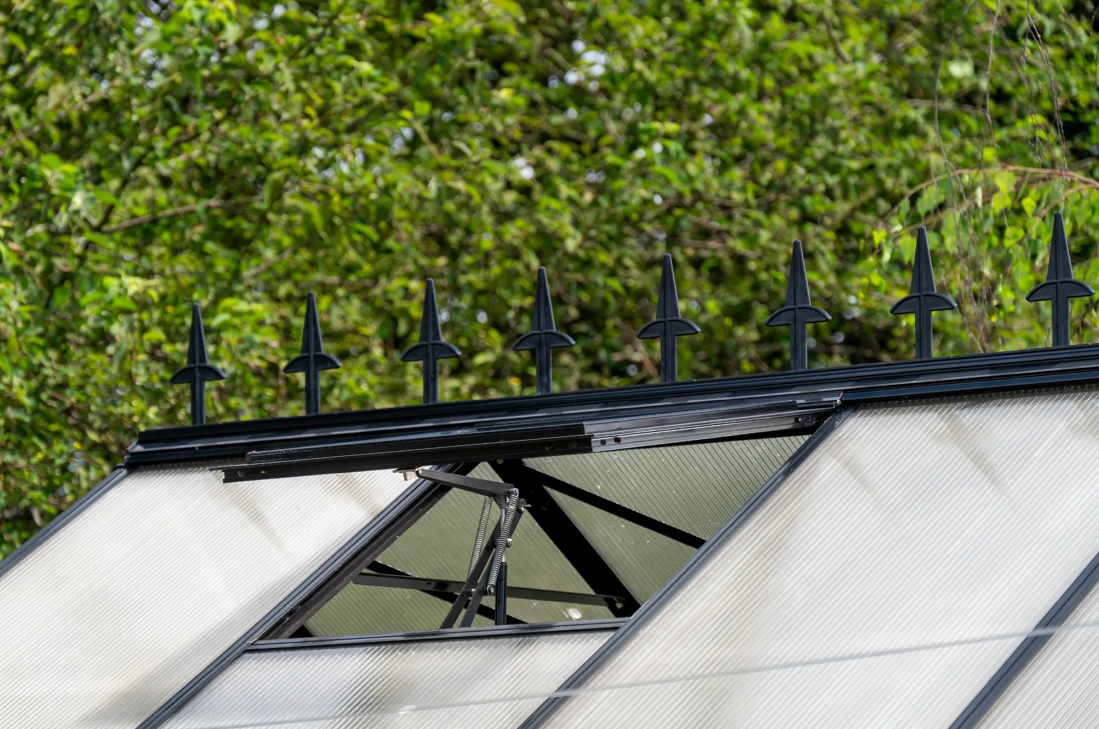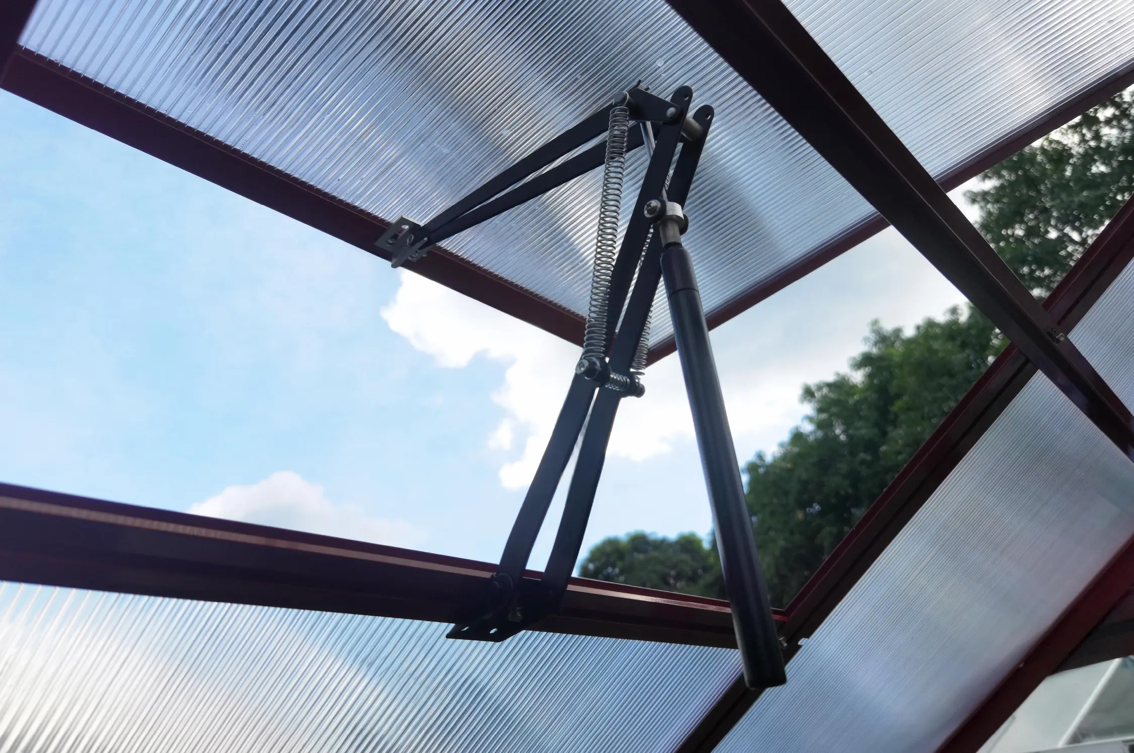 With automatic window openers, your greenhouse is ventilated automatically when the temperature rises. This helps maintain a healthy climate for your plants, even when you are not at home. The opener works with a temperature sensitive cylinder that expands when it gets warm, causing the roof window to open. When the temperature drops, the window closes again automatically. If you select this option, an automatic opener will be inlcuded on each roof window.